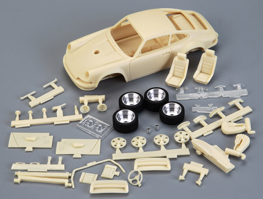 Aí está uma nova proposta da Alpha Model, para quem se aventura bem no mundo da resina: um kit completo para construção de um carro desportivo Porsche 911 (964) Singer.
