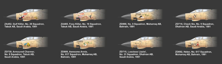Este kit do caça britânico Tornado GR.1, irá incluir decalques para oito versões utilizadas durante a operação Granby. A caixa irá incluir ainda partes em metal fotogravado colorido, máscara de pintura e algumas partes em resina, nomeadamente, para os assentos e também as rodas.